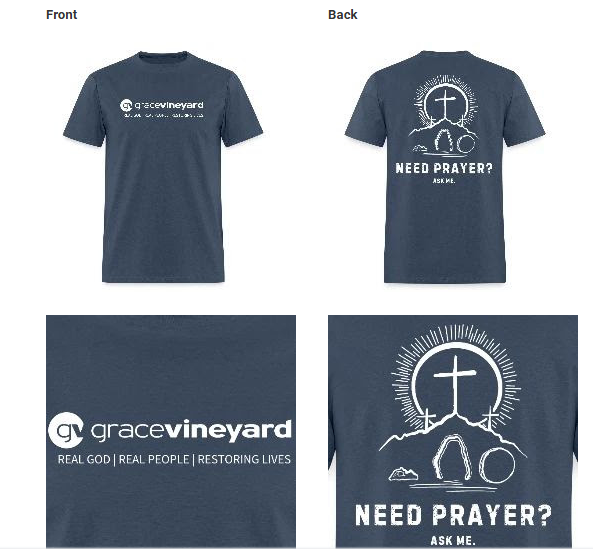 This is a fun announcement to make. Ever wish you had a Grace Vineyard hoodie? Well, we’ve created an online Grace Vineyard Merch Shop. You go online and purchase things like hoodies, hats, totes, mugs, etc that our team has created, they make one for you, and ship it directly to you. Here’s a shirt that I just ordered for myself: