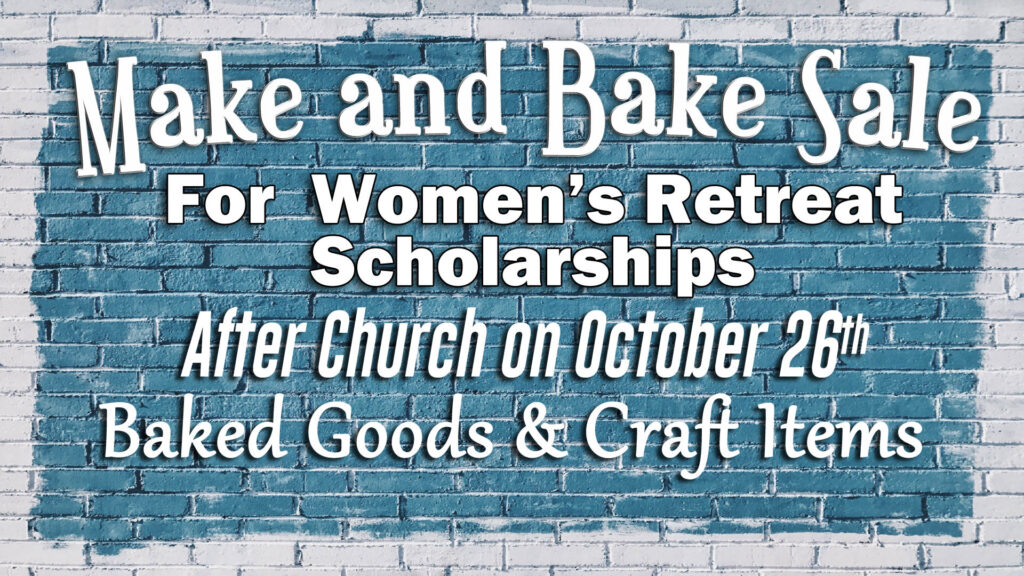 We are fundraising for Scholarships for the women’s retreat so that money is not an issue for anyone who would like to go. So, tomorrow after church we are having another Make and Bake Sale. Baked Goods and Craft Items will be available, so bring your dollars or your credit cards and support our women! I hope you also realize you could just make a donation for Women’s Retreat Scholarships. If you wanted to do that using the donate button at the bottom of this Weekly Update, just put “Women’s Retreat Scholarship” in the part where that ask if you’d like to include a note with your donation.
